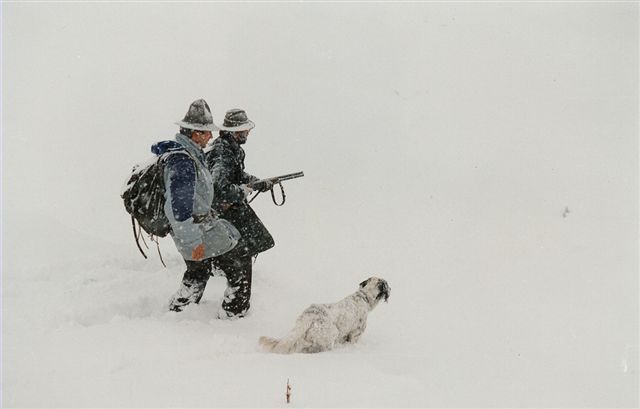 Guidata su pernici bianche nella tormenta.