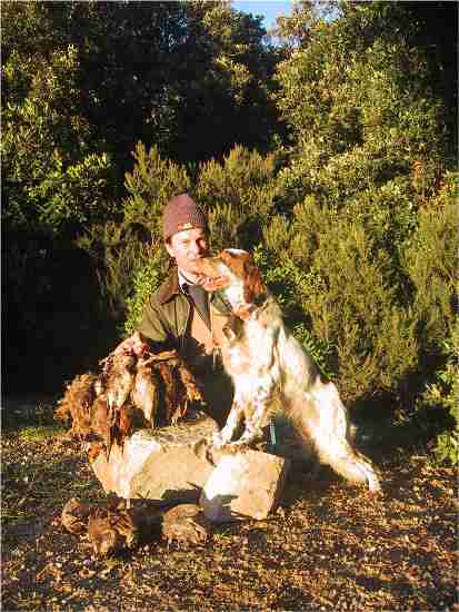 Nella foto allegata io, BARABBA (bianco arancio, vedi genealogia) e BACH figlio diretto del mitico NEGUS x una cagna delle mie con ottime attitudini per beccacce e caccia in alta montagna. Grazie COSTA GIOVANNI ASIAGO 0424 64033 |