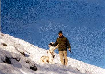 Augusto con Arno Della Brecciara e uno splendido Cotorno dopo una giornata di caccia sui contrafforti abruzzesi.