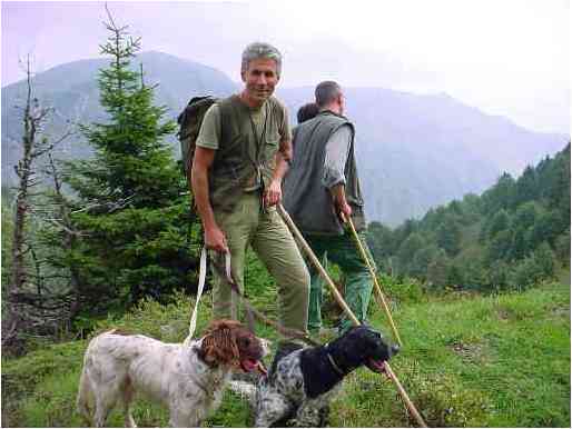 Ch.R. Zico di Crocedomini con Ch.T. Pirso di Crocedomini e me stesso, durante un allenamento in alta montagna. Giacomo. |